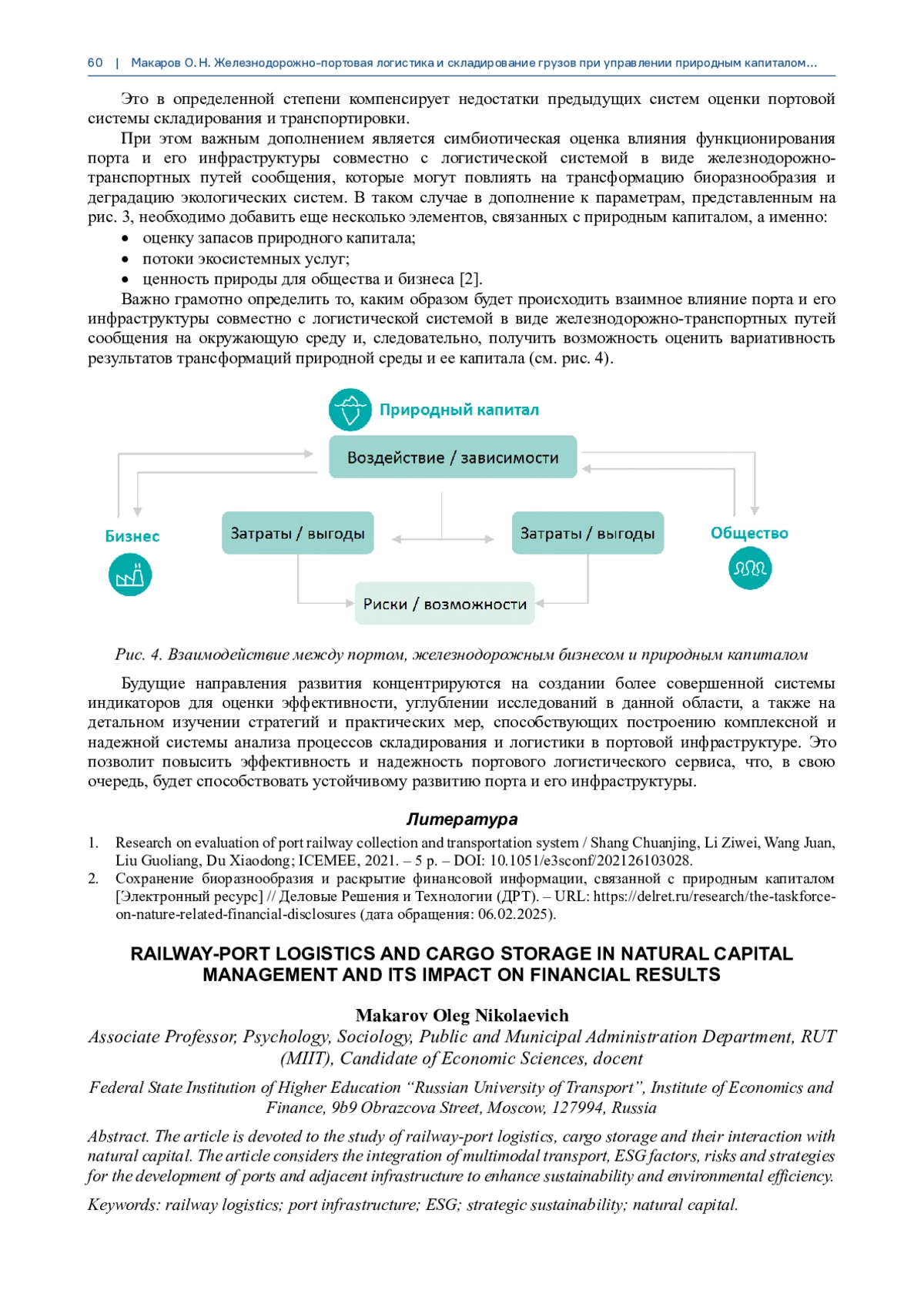 МАКАРОВ О. Н. ЖЕЛЕЗНОДОРОЖНО-ПОРТОВАЯ ЛОГИСТИКА И СКЛАДИРОВАНИЕ ГРУЗОВ ПРИ УПРАВЛЕНИИ ПРИРОДНЫМ КАПИТАЛОМ И ЕГО ВЛИЯНИИ НА ФИНАНСОВЫЕ РЕЗУЛЬТАТЫ // БЮЛЛЕТЕНЬ УЧЕНОГО СОВЕТА АО "ИЭРТ". 2025. № 10-2