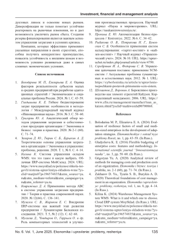1. Болодурина М. П., Елизарьева Е. А. Оценка факторов резильентности субъектов малых и средних предприятий при разработке адаптационных стратегий // Экономические и социальные проблемы России. 2024. № 1. C. 43-59. EDN: KJXBJV