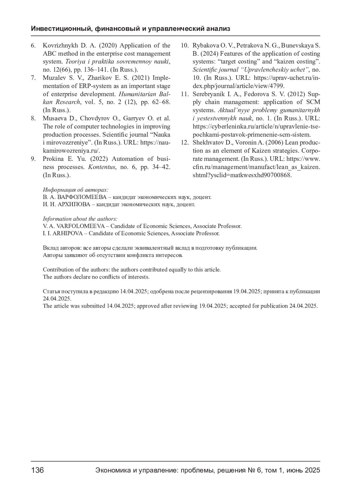 10. Рыбакова О. В., Петракова Н. Г., Буневская С. Б. Особенности применения систем калькулирования: “таргет-костинг” и “кайзен-костинг” // Научный журнал “Управленческий учет”. 2024. № 10. URL: https://upravuchet.ru/index.php/journal/article/view/4799.