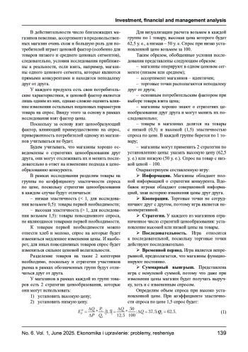 Ключевые фразы: ЦЕНООБРАЗОВАНИЕ, стратегия, розничная торговля, ПРОДОВОЛЬСТВЕННЫЕ ТОВАРЫ, ТЕОРИЯ ИГР, экономическая теория, эластичность спроса по цене