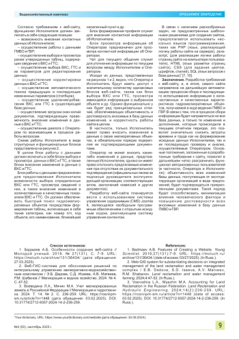 13. Создание экспертной системы с применением геоинформационных и веб-технологий для совершенствования организации управления мелиоративно-водохозяйственным комплексом / А.В. Матвеев, РМ. Шабанов, Э.Б. Дедова, С.Д. Исаева // Сельский механизатор. 2024. № 2. С. 35-36.