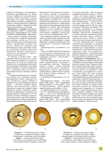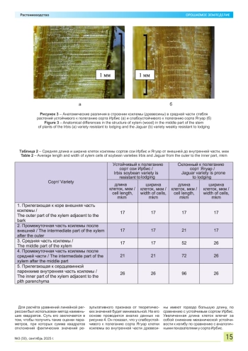 10. Кузнецова О.Н., Петров К.М. Влияние анатомических параметров стебля на устойчивость сои к полеганию // Агрохимия. 2022. № 6. С. 78-85.
