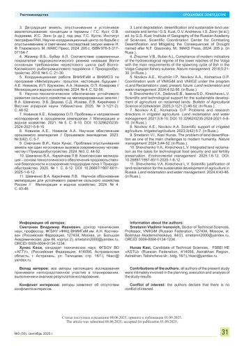 11. Шевченко В.А. Кирейчева Л.В. Научное обоснование мелиорации для устойчивого развития сельского хозяйства России // Мелиорация и водное хозяйство. 2024. № 4. С. 43-46.