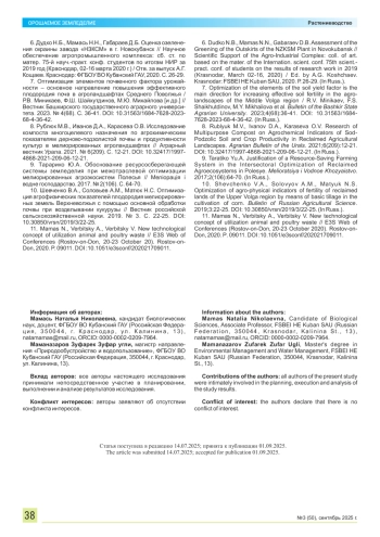 7. Оптимизация элементов почвенного фактора урожайности - основное направление повышения эффективного плодородия почв в агроландшафтах Среднего Поволжья / РВ. Миникаев, Ф.Ш. Шайхутдинов, М.Ю. Михайлова [и др.] // Вестник Башкирского государственного аграрного университета. 2023. № 4(68). С. 36-41. DOI: 10.31563/1684-7628-2023-68-4-36-42