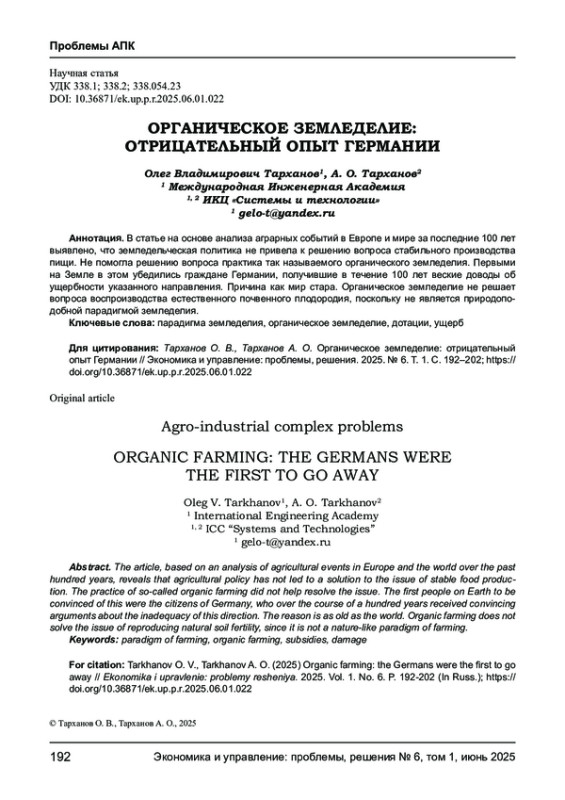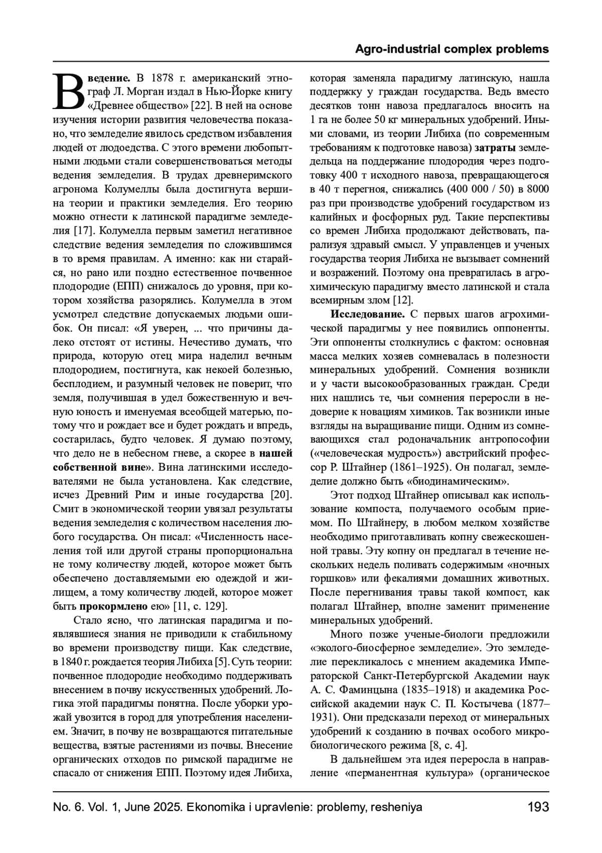 12. Тарханов О. В. Агрохимическая парадигма: как мировое зло // Экономика и управление: проблемы, решения. 2025. Т. 1, № 1 (154). С. 96-110. EDN: OYFLCG