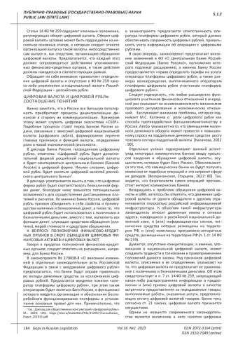 Под воздействием развивающихся технологий все чаще наблюдается тенденция преобразования отечественного законодательства. Регулирование цифровых отношений предполагает формирование важного, обособленного комплекса правовых норм, сочетающего в себе основы традиционного и инновационного права. Общественные отношения все больше информатизируются, что влияет на развитие всех жизненных сфер, включая финансы. И. Е. Шакер справедливо заметил: «Распространение цифровой технологии изменяет координацию экономических взаимосвязей между рынками, фирмами и государством» [Шакер, 2018: 17].