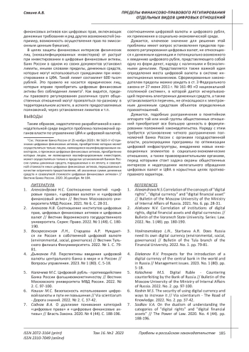 8. Трегубов В.С. Некоторые проблемы правового регулирования цифровых финансовых активов и цифровых валют в Российской Федерации // Государство и право. Материалы 59-й Международной научной студенческой конференции. Новосибирск, 2021. С. 175-176. EDN: AUVTNY