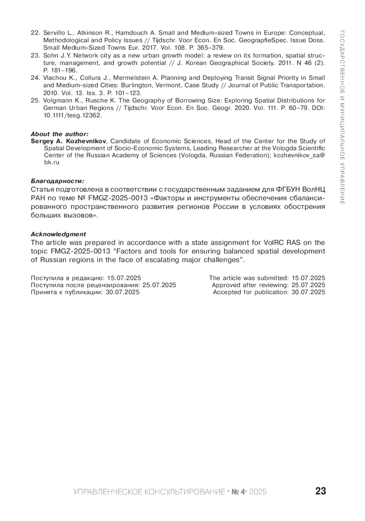 22. Servillo L., Atkinson R., Hamdouch A. Small and Medium-sized Towns in Europe: Conceptual, Methodological and Policy Issues // Tijdschr. Voor Econ. En Soc. GeograpfieSpec. Issue Doss. Small Medium-Sized Towns Eur. 2017. Vol. 108. Р. 365-379.