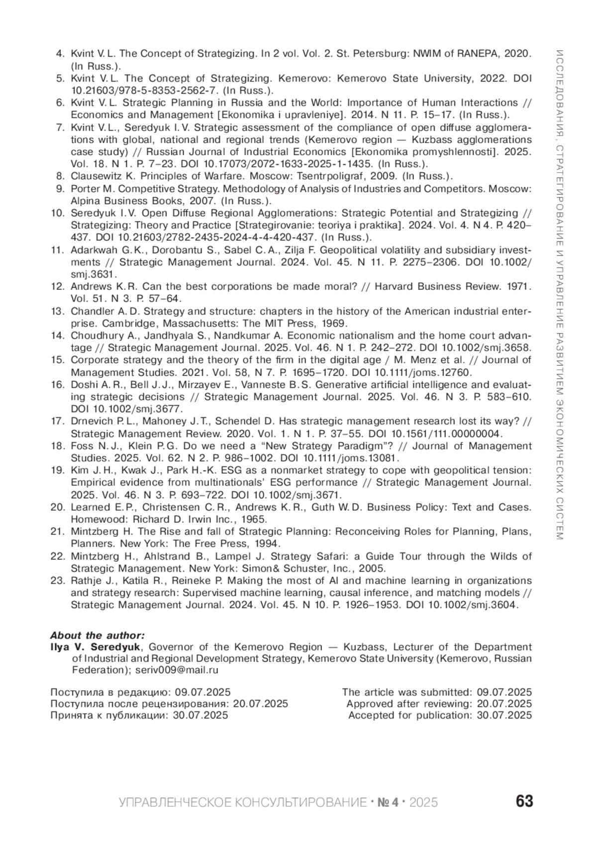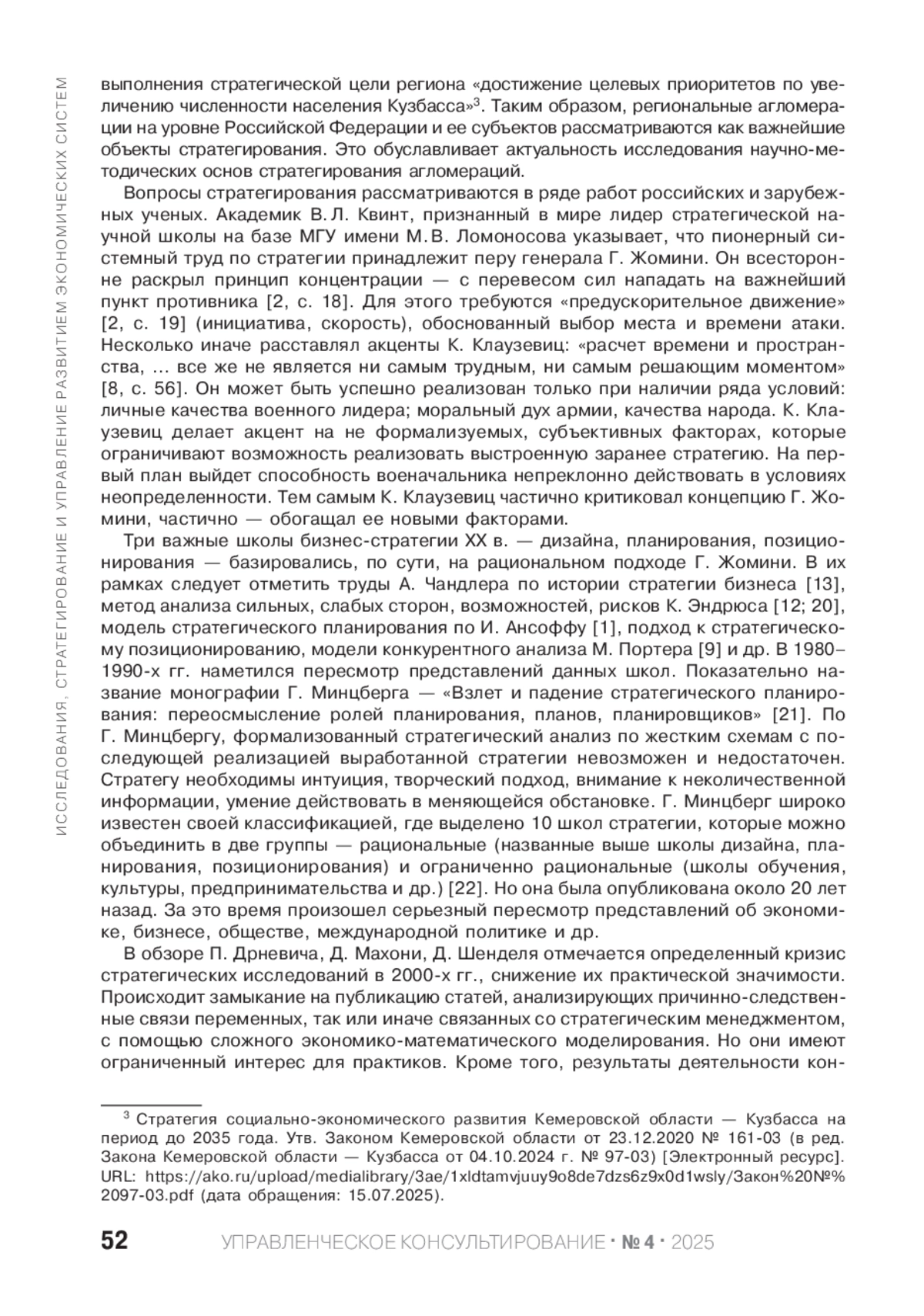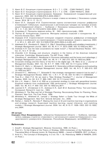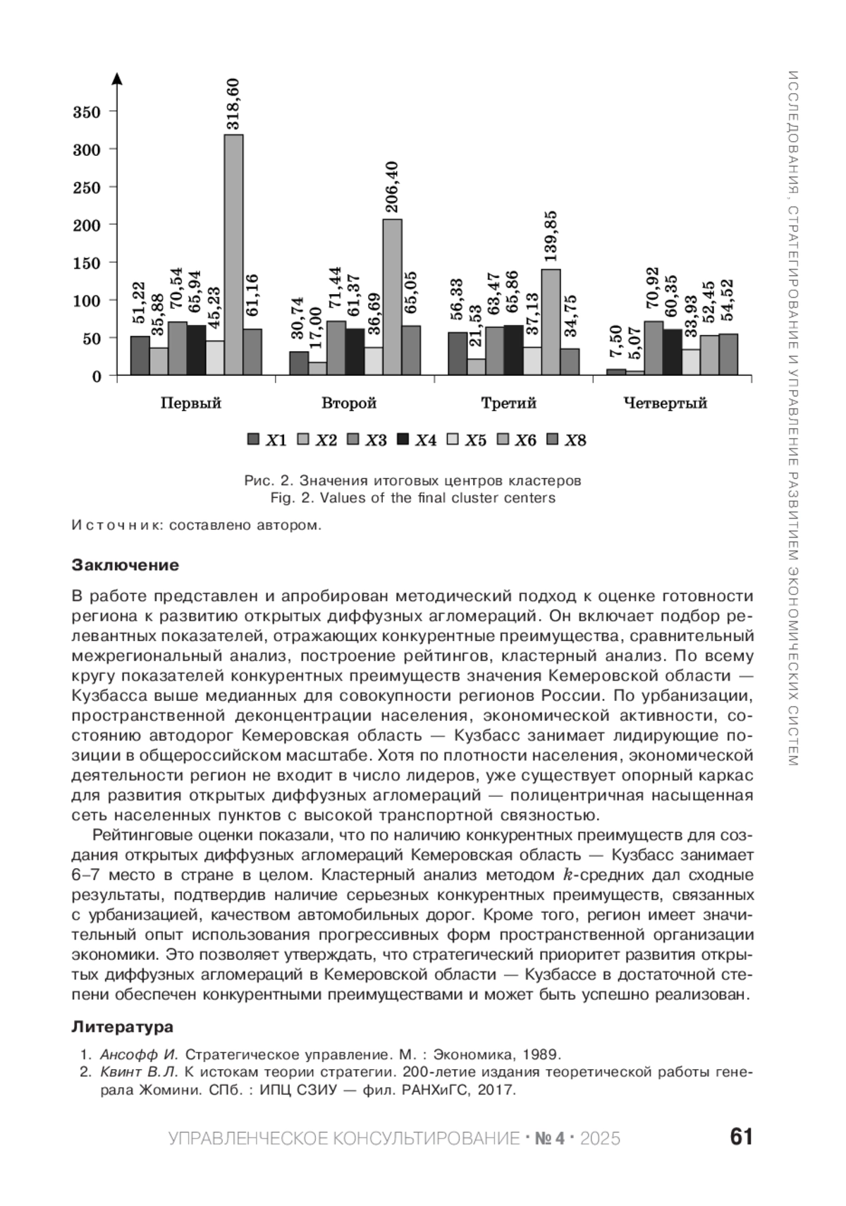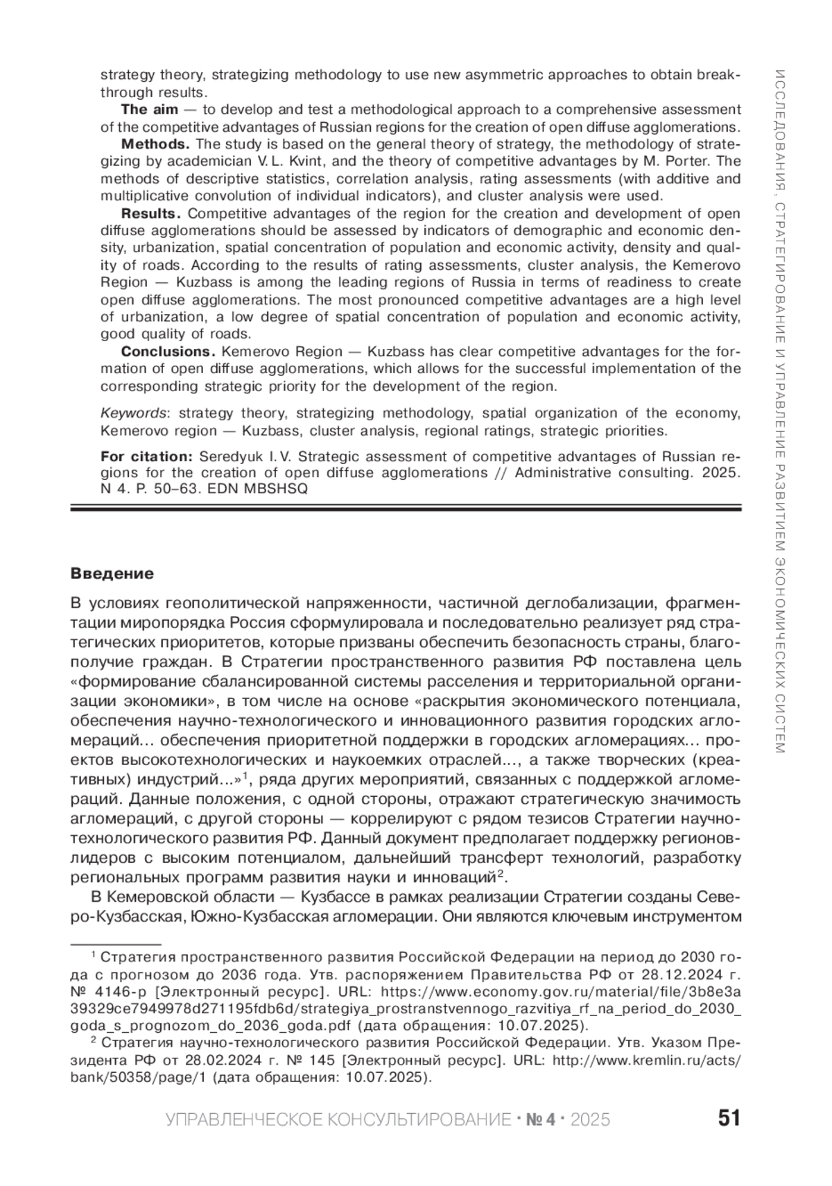 СЕРЕДЮК И. В. СТРАТЕГИЧЕСКАЯ ОЦЕНКА КОНКУРЕНТНЫХ ПРЕИМУЩЕСТВ РЕГИОНОВ РОССИИ ДЛЯ СОЗДАНИЯ ОТКРЫТЫХ ДИФФУЗНЫХ АГЛОМЕРАЦИЙ // УПРАВЛЕНЧЕСКОЕ КОНСУЛЬТИРОВАНИЕ. 2025. № 4 (190)