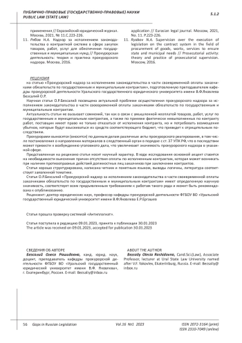 Ryabov N.A. Supervision over the execution of legislation on the contract system in the field of procurement of goods, works, services to ensure state and municipal needs // Prosecutorial activity: theory and practice of prosecutorial supervision. Moscow, 2016.