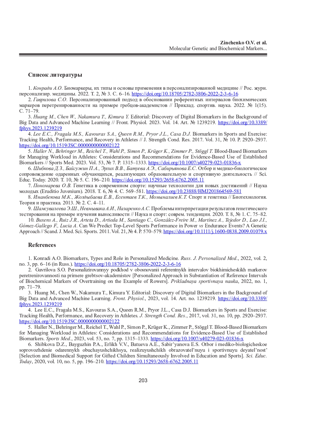 2. Гаврилова С.О. Персонализированный подход в обосновании референтных интервалов биохимических маркеров перетренированности на примере гребцов-академистов // Приклад. спортив. наука. 2022. No 1 (15). С. 71-79.