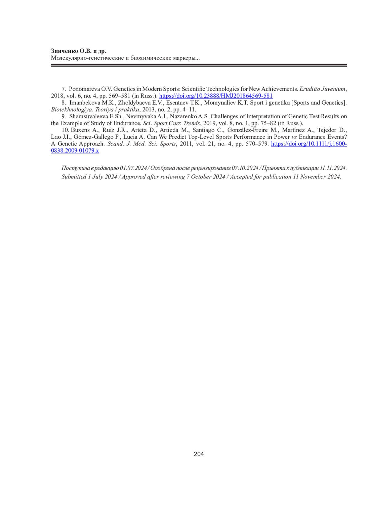 10. Buxens A., Ruiz J.R., Arteta D., Artieda M., Santiago C., González-Freire M., Martínez A., Tejedor D., Lao J.I., Gómez-Gallego F., Lucia A. Can We Predict Top-Level Sports Performance in Power vs Endurance Events? A Genetic Approach // Scand. J. Med. Sci. Sports. 2011. Vol. 21, No 4. Р. 570-579. DOI: 10.1111/j.1600-0838.2009.01079.x
