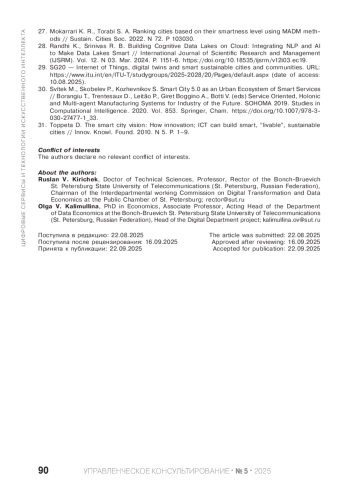 20. Das D. (tran.) A Decade of Smart Urbanism in India through the Smart Cities Mission (SCM)”. Space and Culture. India. 2025. N 12 (4). P. 6-9. https://doi.org/doi:10.20896/3jstx354