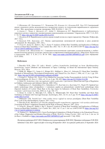 Ключевые фразы: адаптация к учебной нагрузке, интенсификация учебного процесса, ВАРИАБЕЛЬНОСТЬ СЕРДЕЧНОГО РИТМА, студенты медицинского колледжа, СЕСТРИНСКОЕ ДЕЛО