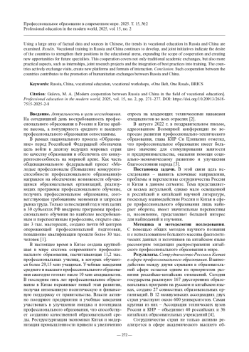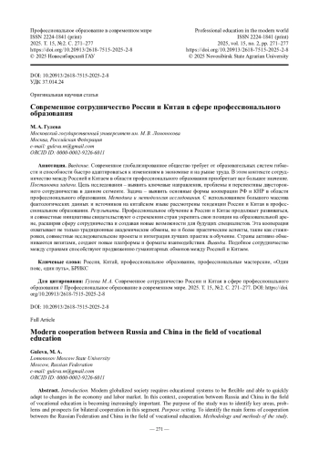 Введение. Современное глобализированное общество требует от образовательных систем гибкости и способности быстро адаптироваться к изменениям в экономике и на рынке труда. В этом контексте сотрудничество между Россией и Китаем в области профессионального образования приобретает все большее значение.