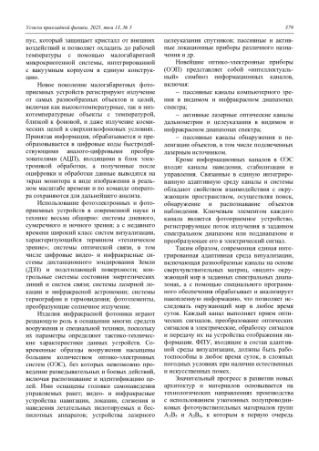 Ключевые фразы: фотоприемное устройство (ФПУ), МФПУ, HgCdTe, InSb, InGaAs, QWIP, системы тех-нического зрения (стз)