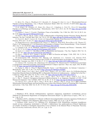 11. Merry T.L., Chan A., Woodhead J.S.T., Reynolds J.C., Kumagai H., Kim S.-J., Lee C. Mitochondrial-Derived Peptides in Energy Metabolism // Am. J. Physiol. Endocrinol. Metab. 2020. Vol. 319, No 4. Р. E659-E666. DOI: 10.1152/ajpendo.00249.2020 EDN: EUPPXD