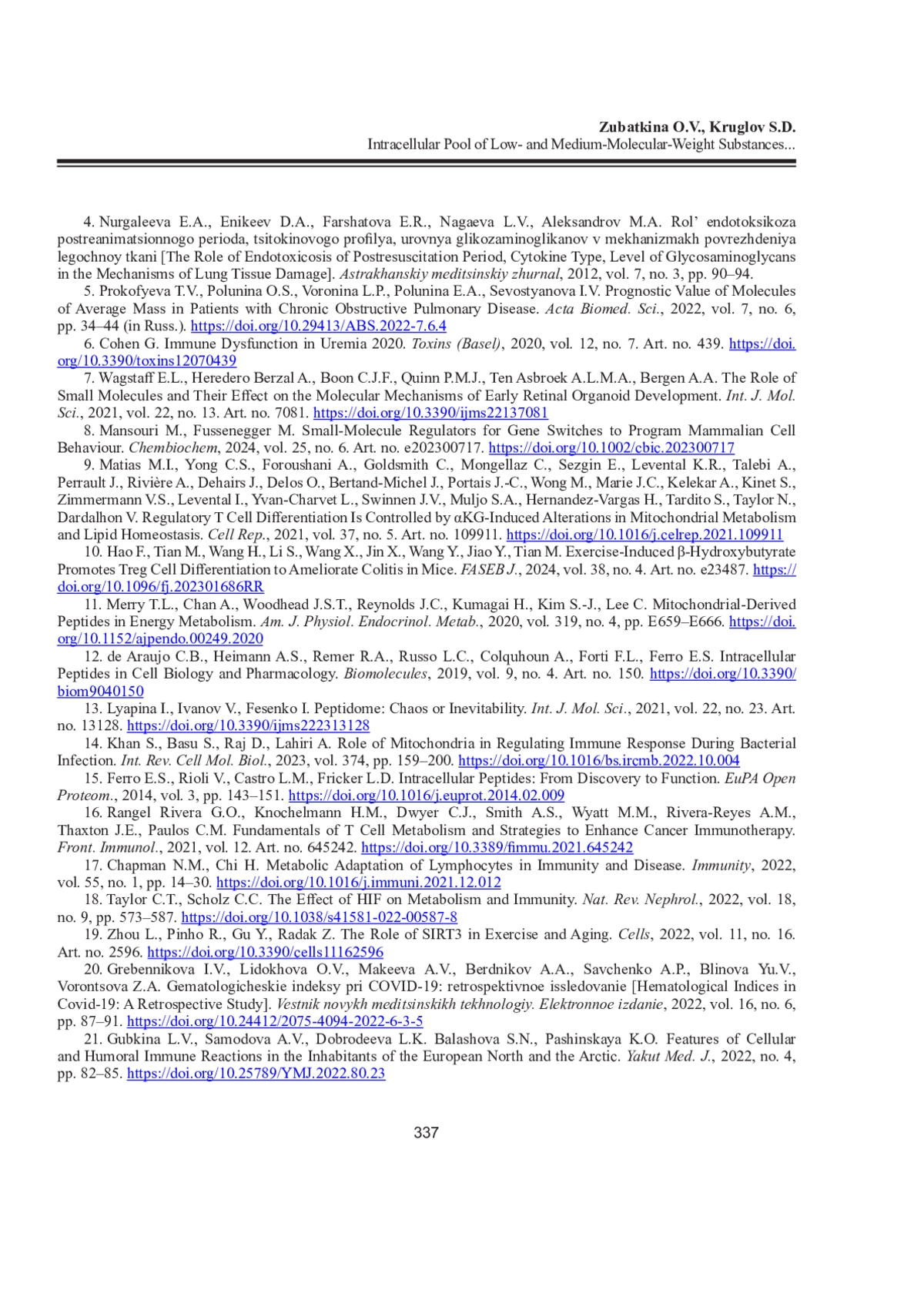 6. Cohen G. Immune Dysfunction in Uremia 2020 // Toxins (Basel). 2020. Vol. 12, No 7. Art. No 439. DOI: 10.3390/toxins12070439 ▼ Контекст