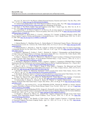 9. Palaus M., Marron E.M., Viejo-Sobera R., Redolar-Ripoll D. Neural Basis of Video Gaming: A Systematic Review // Front. Hum. Neurosci. 2017. Vol. 11. Art. No 248. DOI: 10.3389/fnhum.2017.00248