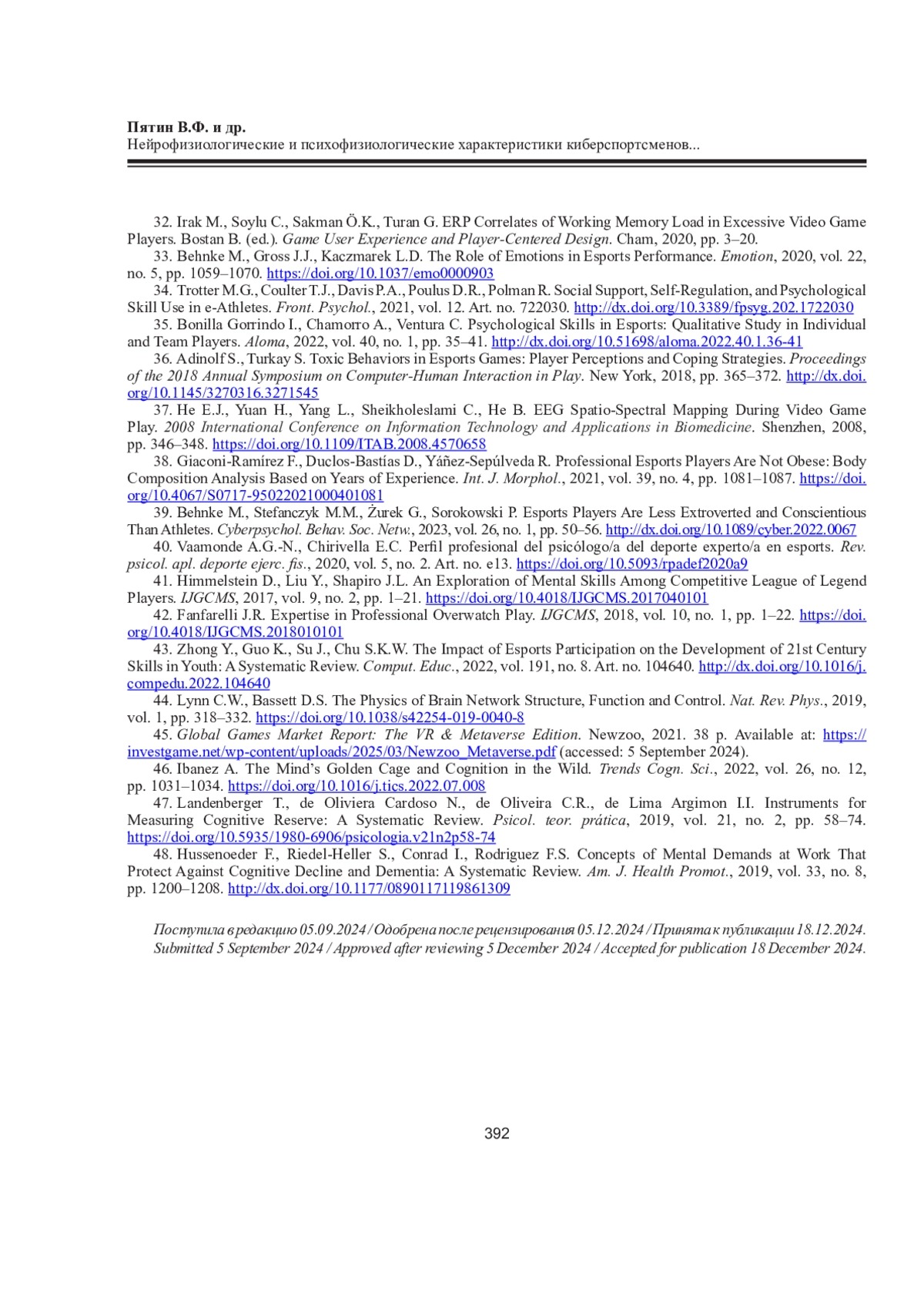 32. Irak M., Soylu C., Sakman Ö.K., Turan G. ERP Correlates of Working Memory Load in Excessive Video Game Players // Game User Experience and Player-Centered Design / ed. by B. Bostan. Cham: Springer, 2020. P. 3-20.