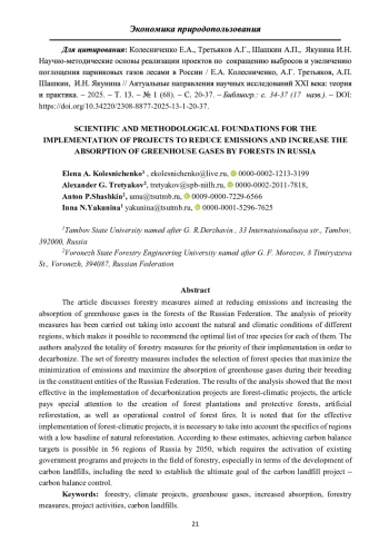 9. Morkovina S., Kolesnichenko E., Yakovenko N., Sheshnitsan S., Vodolazhsky A., Pryadilina N., Manmareva V. Forecast of greenhouse gas emissions and absorption of forestry activities in Russia. BIO Web of Conferences. 2024;145;06005. EDN: EJEQHF