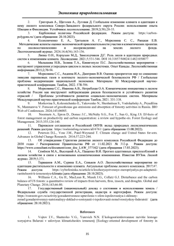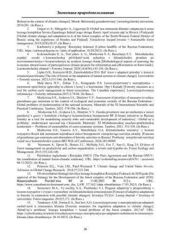 1. Войтов И.В., Шатравко В.Г., Юревич Н.Н. [и др.] Экологоориентированное развитие лесного хозяйства Беларуси в условиях климатических изменений. Минск: Белорусский государственный технологический университет, 2019;201. EDN: QLOBNJ