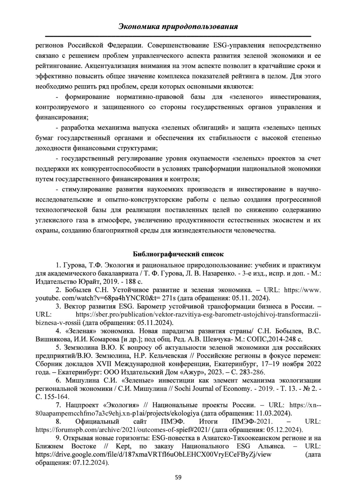 18. ESG development vector. Barometer of sustainable business transformation in Russia. - URL: https://sber.pro/publication/vektor-razvitiya-esg-barometr-ustojchivoj-transformaczii-biznesa-v-rossii (date of access: 05.11.2024).