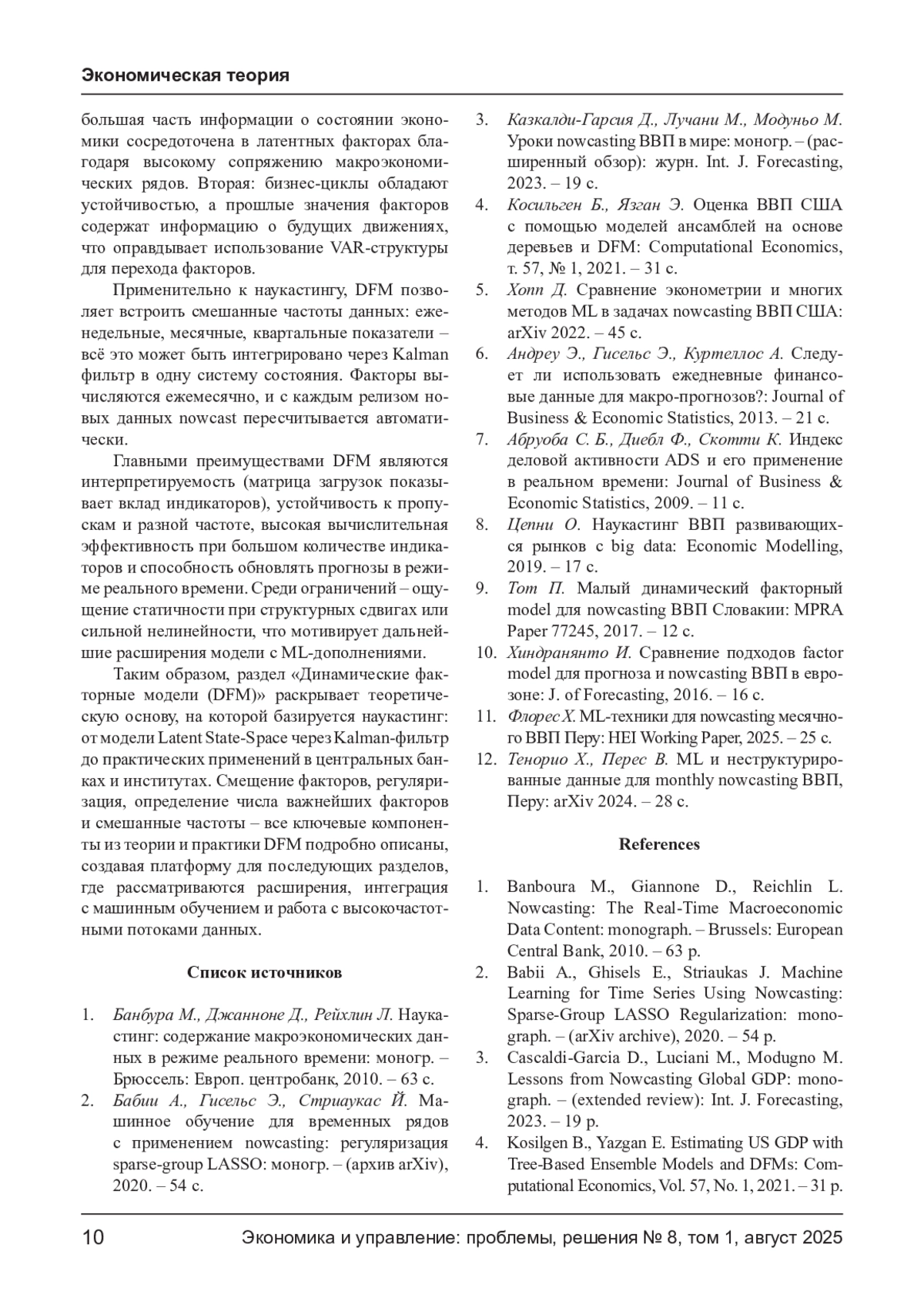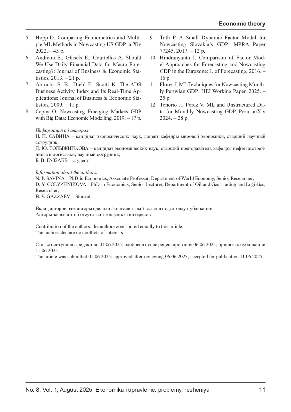 3. Казкалди-Гарсия Д., Лучани М., Модуньо М. Уроки nowcasting ВВП в мире: моногр. - (расширенный обзор): журн.Int. J. Forecasting, 2023. - 19 с.