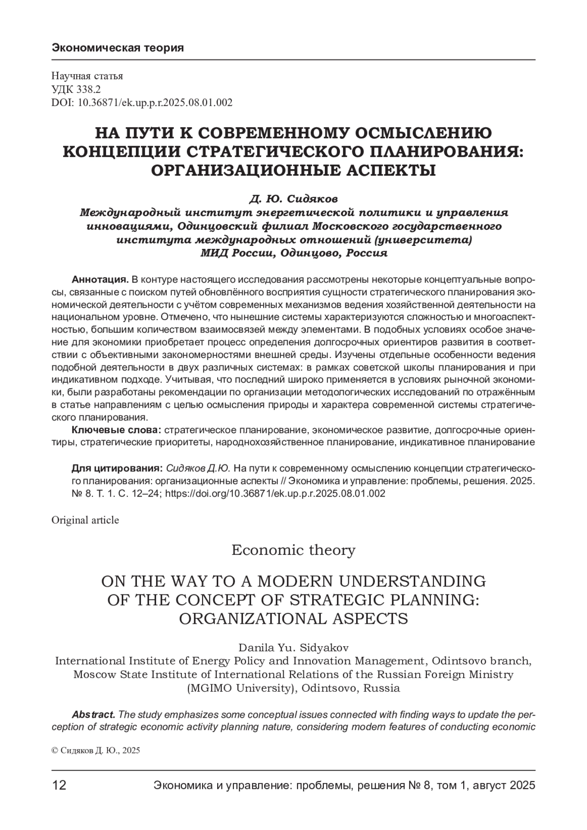 В контуре настоящего исследования рассмотрены некоторые концептуальные вопросы, связанные с поиском путей обновлённого восприятия сущности стратегического планирования экономической деятельности с учётом современных механизмов ведения хозяйственной деятельности на национальном уровне. Отмечено, что нынешние системы характеризуются сложностью и многоаспектностью, большим количеством взаимосвязей между элементами. В подобных условиях особое значение для экономики приобретает процесс определения долгосрочных ориентиров развития в соответствии с объективными закономерностями внешней среды. Изучены отдельные особенности ведения подобной деятельности в двух различных системах: в рамках советской школы планирования и при индикативном подходе. Учитывая, что последний широко применяется в условиях рыночной экономики, были разработаны рекомендации по организации методологических исследований по отражённым в статье направлениям с целью осмысления природы и характера современной системы стратегического планирования.