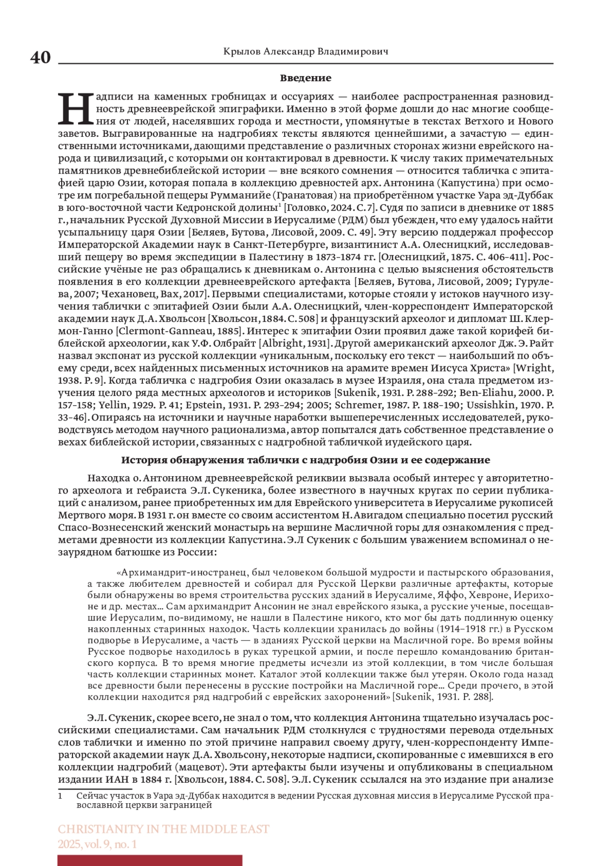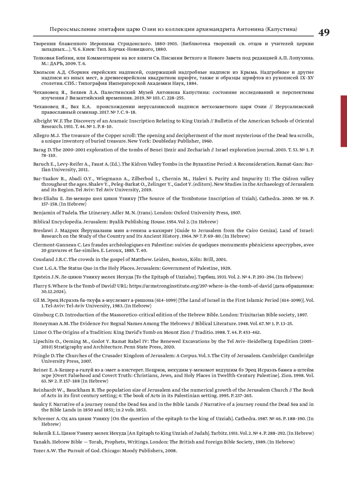КРЫЛОВ А. В. ПЕРЕОСМЫСЛЕНИЕ ЭПИТАФИИ ЦАРЮ ОЗИИ ИЗ КОЛЛЕКЦИИ АРХИМАНДРИТА АНТОНИНА (КАПУСТИНА) // ХРИСТИАНСТВО НА БЛИЖНЕМ ВОСТОКЕ. 2025. № 1, ТОМ 9