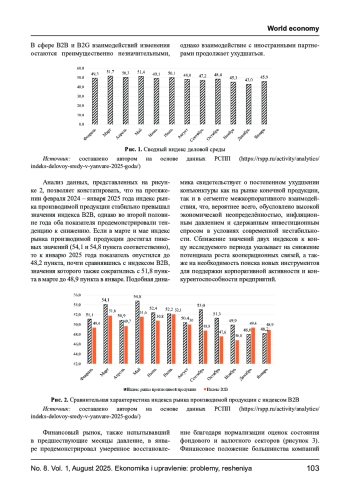 Основная цель исследования заключается в комплексном анализе конкурентоспособности российской экономики в условиях нарастающей макроэкономической нестабильности. В статье рассмотрены ключевые индикаторы деловой активности, финансовые и логистические показатели, а также динамика социальной и инвестиционной активности предприятий по результатам 2024-2025 гг. Особое внимание уделяется состоянию внутреннего рынка, межкорпоративным и государственно-деловым взаимоотношениям, а также специфике адаптационных стратегий российского бизнеса. В статье проведён сравнительный анализ ряда индексов, таких как агрегированный Индекс деловой среды, индекс рынка производимой продукции, индекс B2B и индекс финансовых рынков, на основе данных РСПП. Научная новизна статьи состоит в интеграции нескольких источников статистической информации и их интерпретации в аспекте современных вызовов национальной конкурентоспособности. Показано, что устойчивость и развитие корпоративного сектора в значительной мере определяются гибкостью управления, инновационной активностью и совершенствованием социальной инфраструктуры предприятий на фоне внешних ограничений. Сформулированы ключевые направления повышения конкурентных преимуществ российской экономики в среднесрочной перспективе.