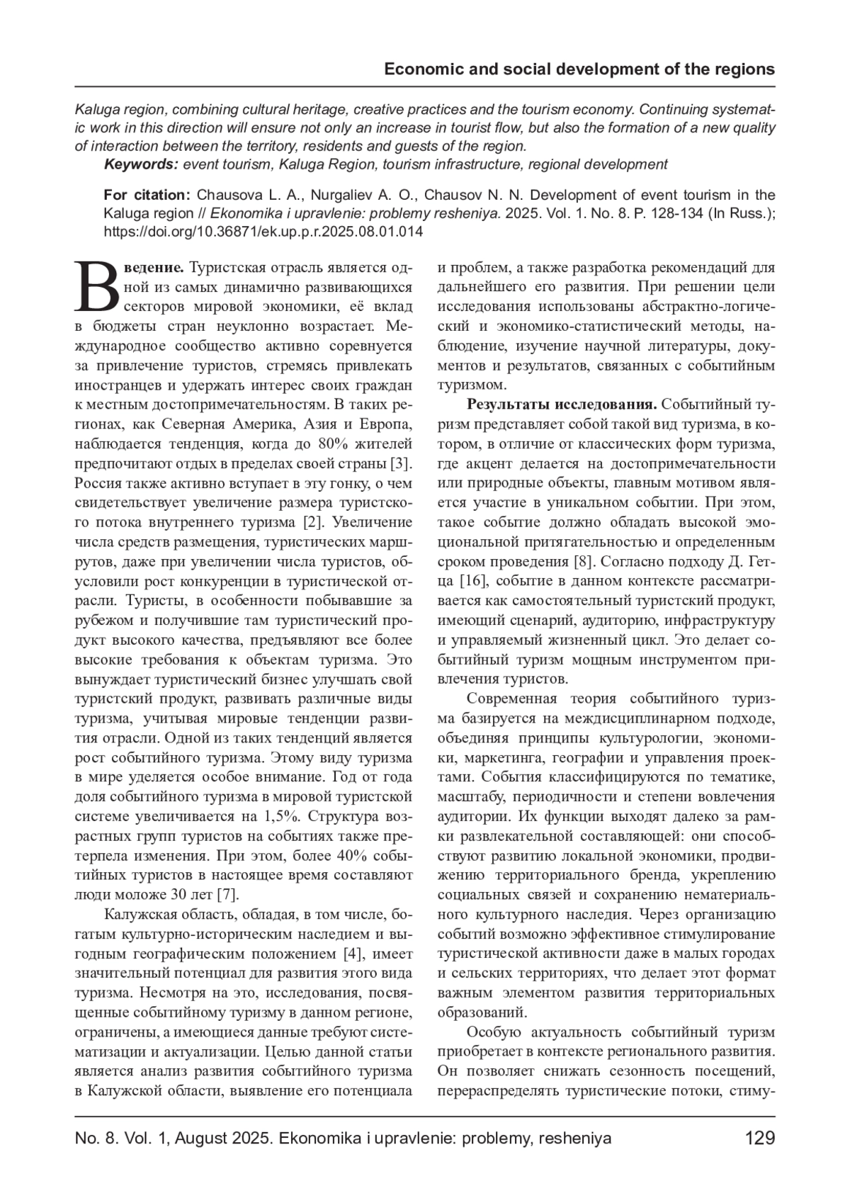 2. Балакирева Е. С., Чаусов Н. Ю. Перспективы развития внутреннего туризма Калужской области // Modern Economy Success. 2021. № 5. С. 47-51. EDN: DFNLAM