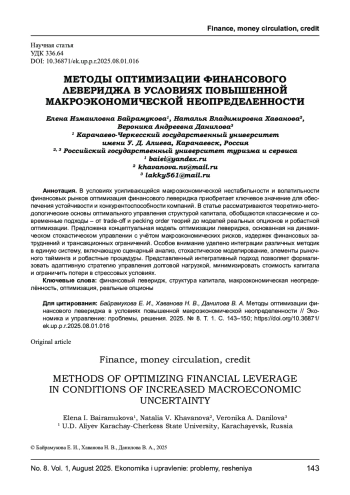 Статья: МЕТОДЫ ОПТИМИЗАЦИИ ФИНАНСОВОГО ЛЕВЕРИДЖА В УСЛОВИЯХ ПОВЫШЕННОЙ МАКРОЭКОНОМИЧЕСКОЙ НЕОПРЕДЕЛЕННОСТИ (2025)