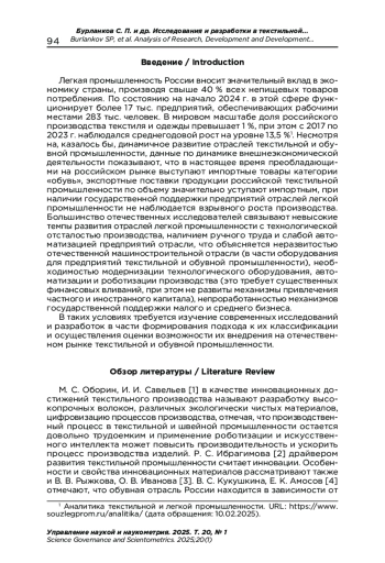 2. Ибрагимова Р. С. Инновации как основа развития текстильной промышленности: состояние и проблемы // Известия высших учебных заведений. Серия: Экономика, финансы и управление производством. 2024. № 4(62). С. 41-48. DOI: 10.6060//ivecofin.2024624.700 EDN: KOLATK