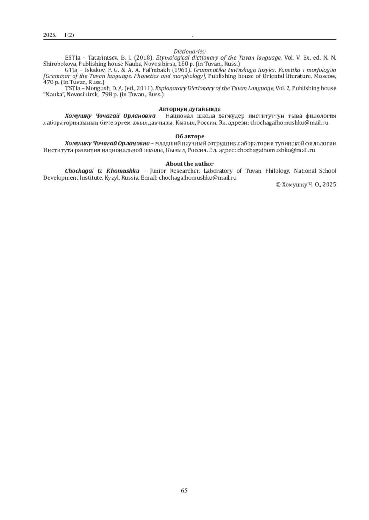 9. ГТЯ — Искаков Ф. Г., Пальмбах А. А. Грамматика тувинского языка. Фонетика и морфология. Москва: Издательство восточной литературы, 1961. 470 с.