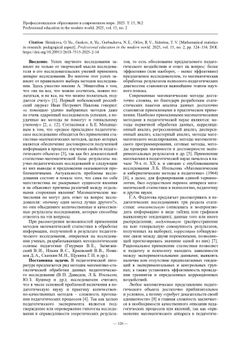 5. Чуйко Л.В. Математические методы в педагогике как условие совершенствования качества образования: автореф. дис. … канд. пед. наук. Смоленск, 2006. 20 с.