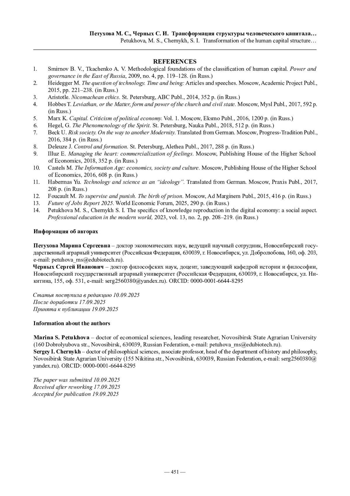 14. Петухова М. С., Черных С. И. Специфика воспроизводства знаний в цифровой экономике: социальный аспект // Профессиональное образование в современном мире. 2023. Т. 13. № 2. С. 208-219.