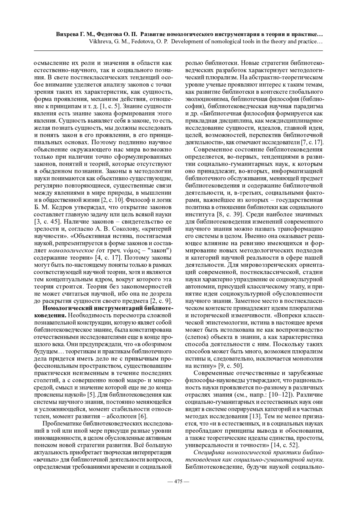 18. Вихрева Г. М., Федотова О. П. Номология как методологическая перспектива развития библиотековедения: к постановке вопроса // Тенденции развития библиотек в современном обществе: перспективы, возможности, реальность: материалы научно-практического семинара (Новосибирск, 24-25 октября 2018 г.) Новосибирск: Изд-во НГПУ, 2018. С. 24-29.