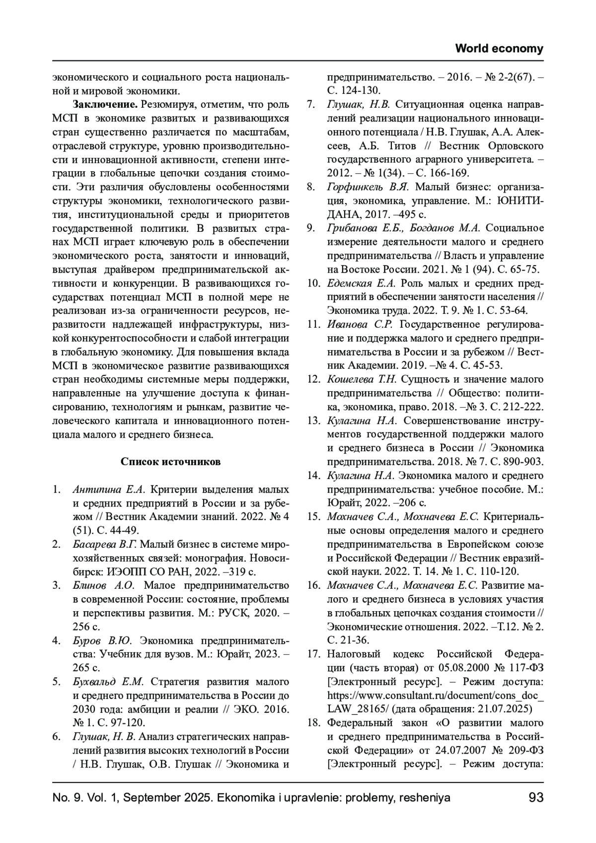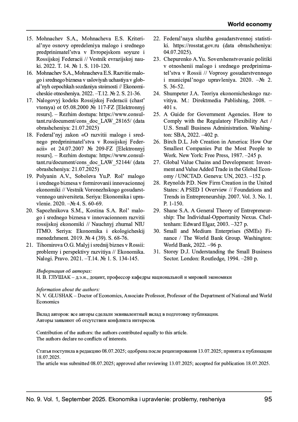 15. Мохначев С.А., Мохначева Е.С. Критериальные основы определения малого и среднего предпринимательства в Европейском союзе и Российской Федерации // Вестник евразийской науки. 2022. Т. 14. № 1. С. 110-120.