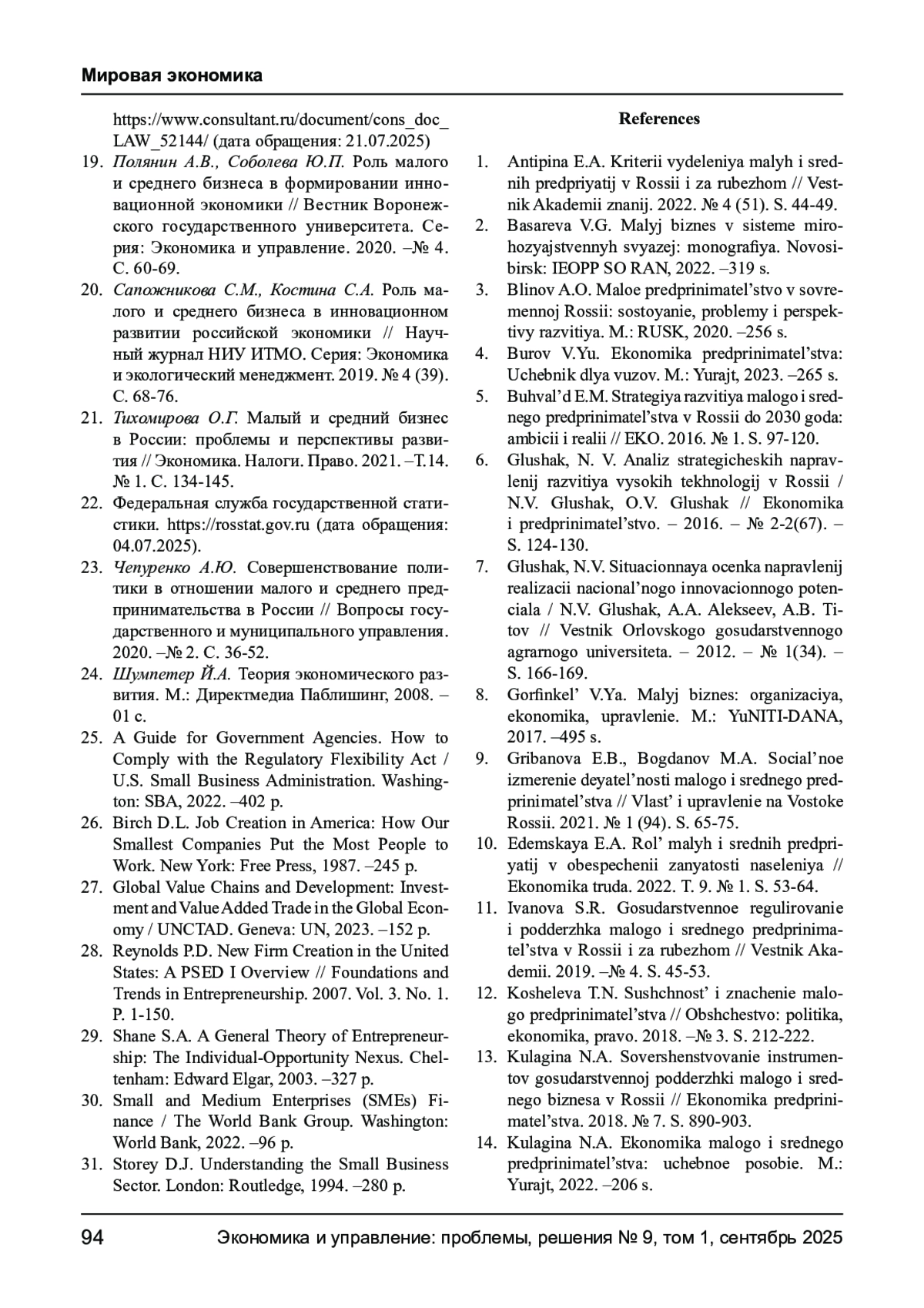 19. Полянин А.В., Соболева Ю.П. Роль малого и среднего бизнеса в формировании инновационной экономики // Вестник Воронежского государственного университета. Серия: Экономика и управление. 2020. -№ 4. С. 60-69.