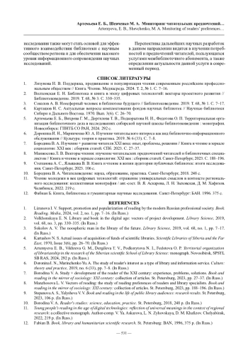 2. Волхонская Е. Н. Библиотека и книга в эпоху цифровых технологий: векторы проектного развития // Библиотековедение. 2019. Т. 68, № 3. С. 330-335.