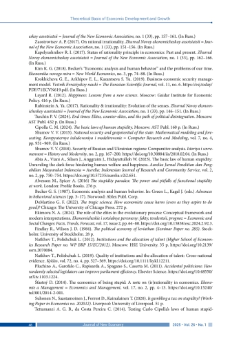 2. Автономов В. С. (2017). Постоянная и переменная рациональность как предпосылка экономической теории // Журнал Новой экономической ассоциации. № 1 (33). С. 142-146. EDN: YLYKZZ