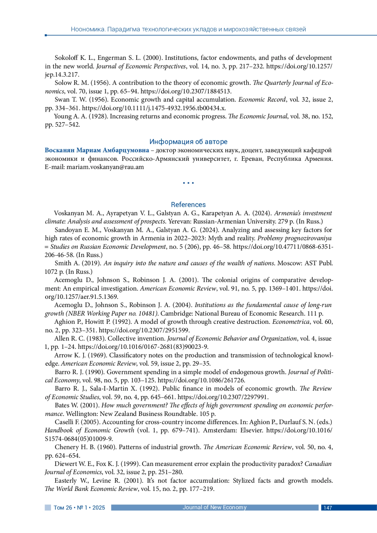 33. Sokoloff K. L., Engerman S. L. (2000). Institutions, factor endowments, and paths of development in the new world. Journal of Economic Perspectives, vol. 14, no. 3, pp. 217-232. DOI: 10.1257/jep.14.3.217 EDN: DJPRCN