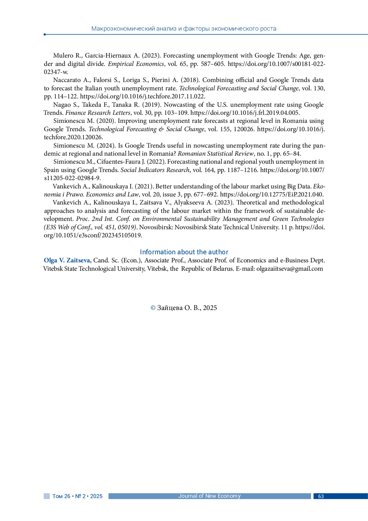 23. Mulero R., Garcia-Hiernaux A. (2023). Forecasting unemployment with Google Trends: Age, gender and digital divide. Empirical Economics, vol. 65, pp. 587-605. DOI: 10.1007/s00181-02202347-w EDN: FGMDBB