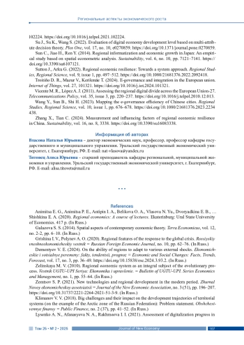 14. Сурнина Н. М., Шишкина Е. А. (2020). Цифровизация как фактор обеспечения устойчивого развития пространственных инфраструктурных систем региона // Научные труды Вольного экономического общества России. Т. 223, № 3. С. 251-259. DOI: 10.38197/2072-2060-2020-223-3-251-259 EDN: NYXNAV
