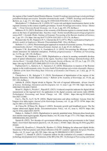 23. Feurich M., Kourilova J., Pelucha M., Kasabov E. (2024). Bridging the urban-rural digital divide: Taxonomy of the best practice and critical reflection of the EU countries’ approach. European Planning Studies, vol. 32, issue 3, pp. 483-505. DOI: 10.1080/09654313.2023.2186167 EDN: CVYFPX