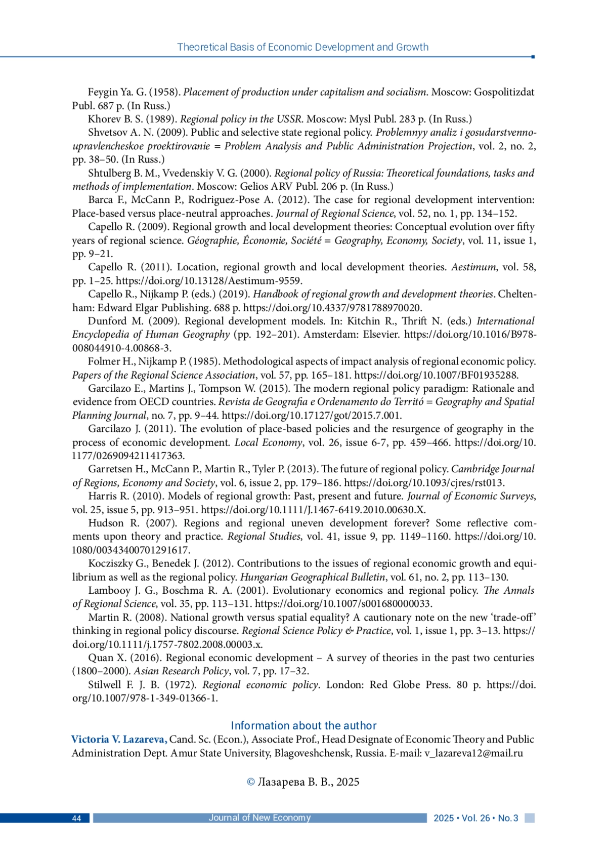 43. Harris R. (2010). Models of regional growth: Past, present and future. Journal of Economic Surveys, vol. 25, issue 5, pp. 913-951. DOI: 10.1111/J.1467-6419.2010.00630.X