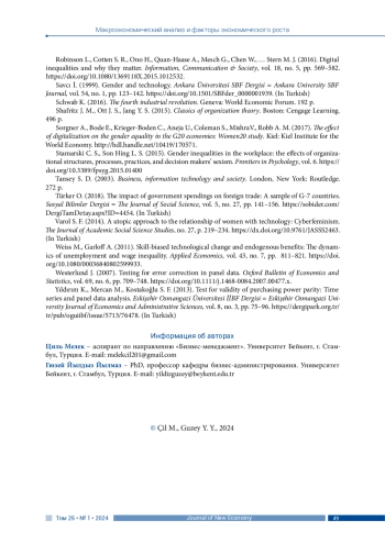 1. Abbasabadi H. M., Soleimani M. (2021). Examining the effects of digital technology expansion on Unemployment: A cross-sectional investigation. Technology in Society, vol. 64, 101495. DOI: 10.1016/j.techsoc.2020.101495