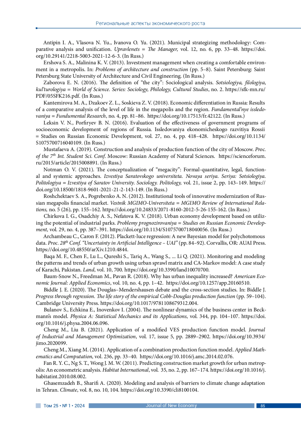 7. Мустафаева А. (2019). Построение и анализ производственной функции города Москвы // Материалы VII Международной студенческой научной конференции. Москва: Российская академия естествозания. https://files.scienceforum.ru/pdf/2015/8891.pdf.