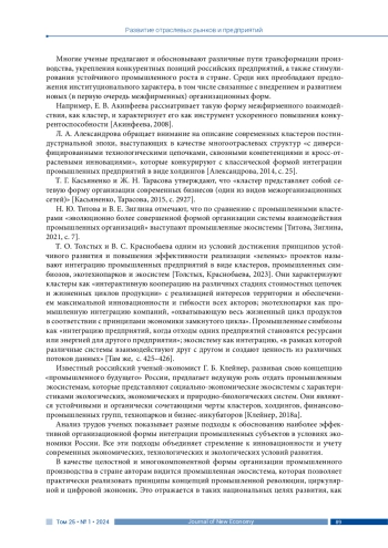 27. Титова Н. Ю., Зиглина В. Е. (2021). Различия и сходства понятий “промышленные кластеры” и “промышленные экосистемы” // Вестник Астраханского государственного технического университета. Серия: Экономика. № 3. С. 7-16. DOI: 10.24143/2073-5537-2021-3-7-16 EDN: LFHWJY